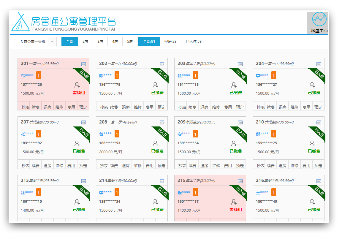房屋出租狀態(tài),繳費(fèi)預(yù)警,租客信息一目了然,